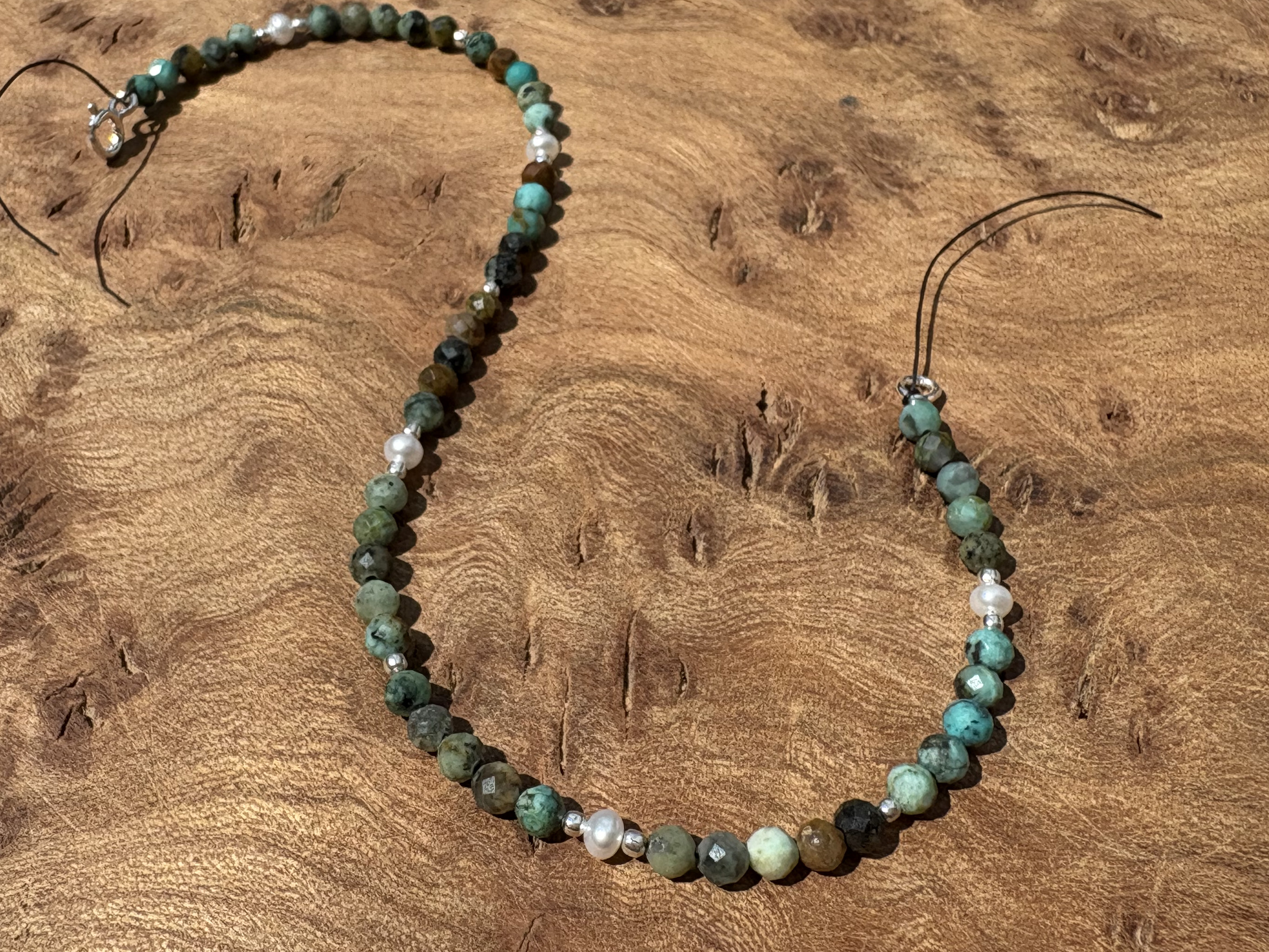 Kombiniert mit Süßwasserzuchtperlen und Silber.