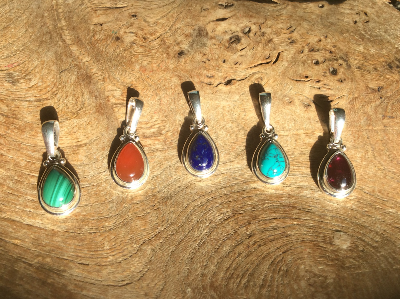 Kettenanhänger mit Steinen in Tropfenform.